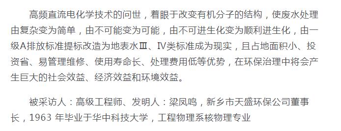 中國(guó)高新技術(shù)網(wǎng)發(fā)布:《關(guān)注:解碼科技創(chuàng)新》——新鄉(xiāng)市天盛環(huán)保“超強(qiáng)氧化還原廢水處理技術(shù)”